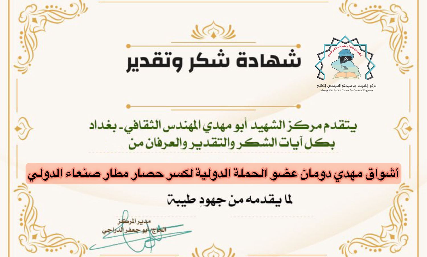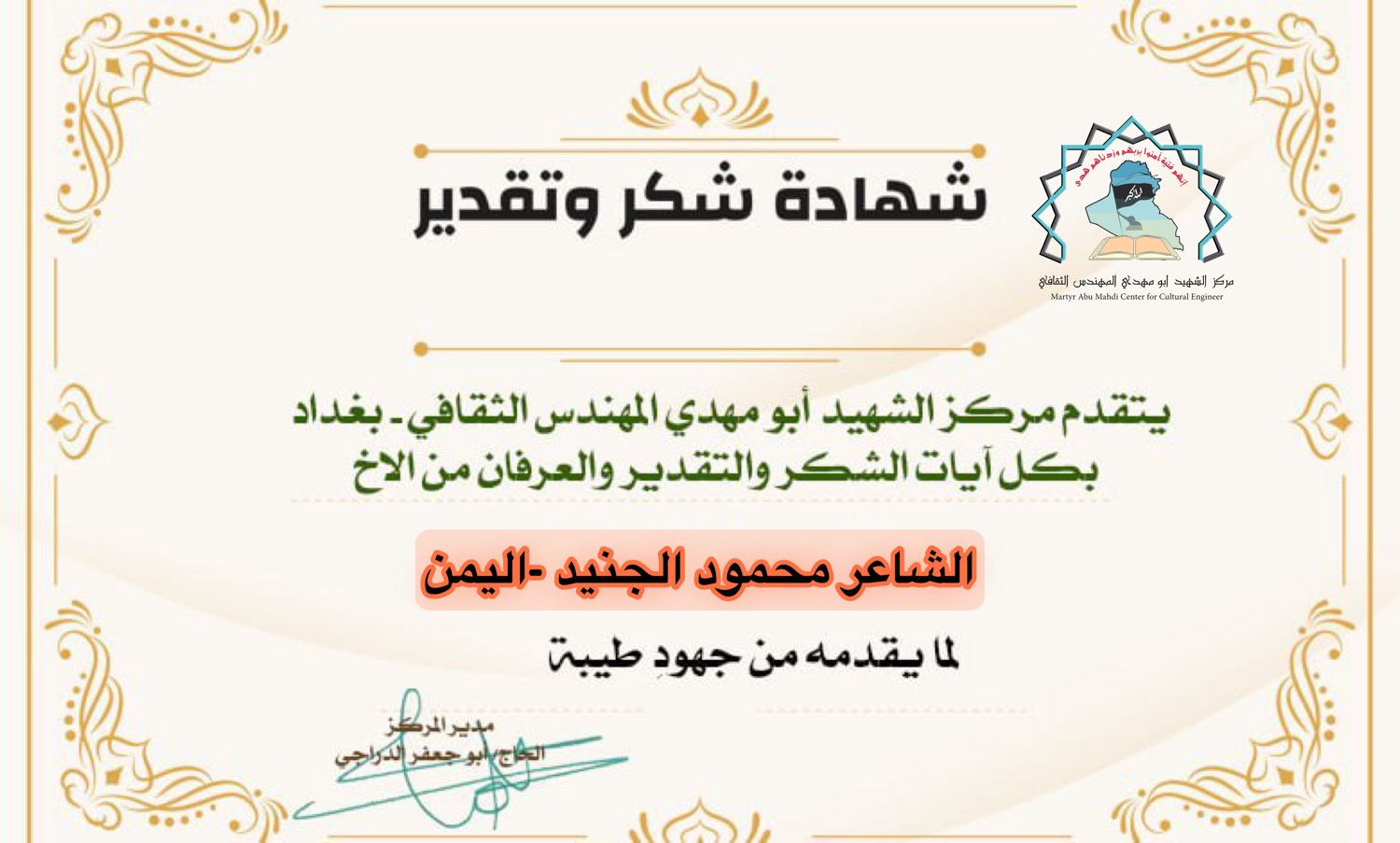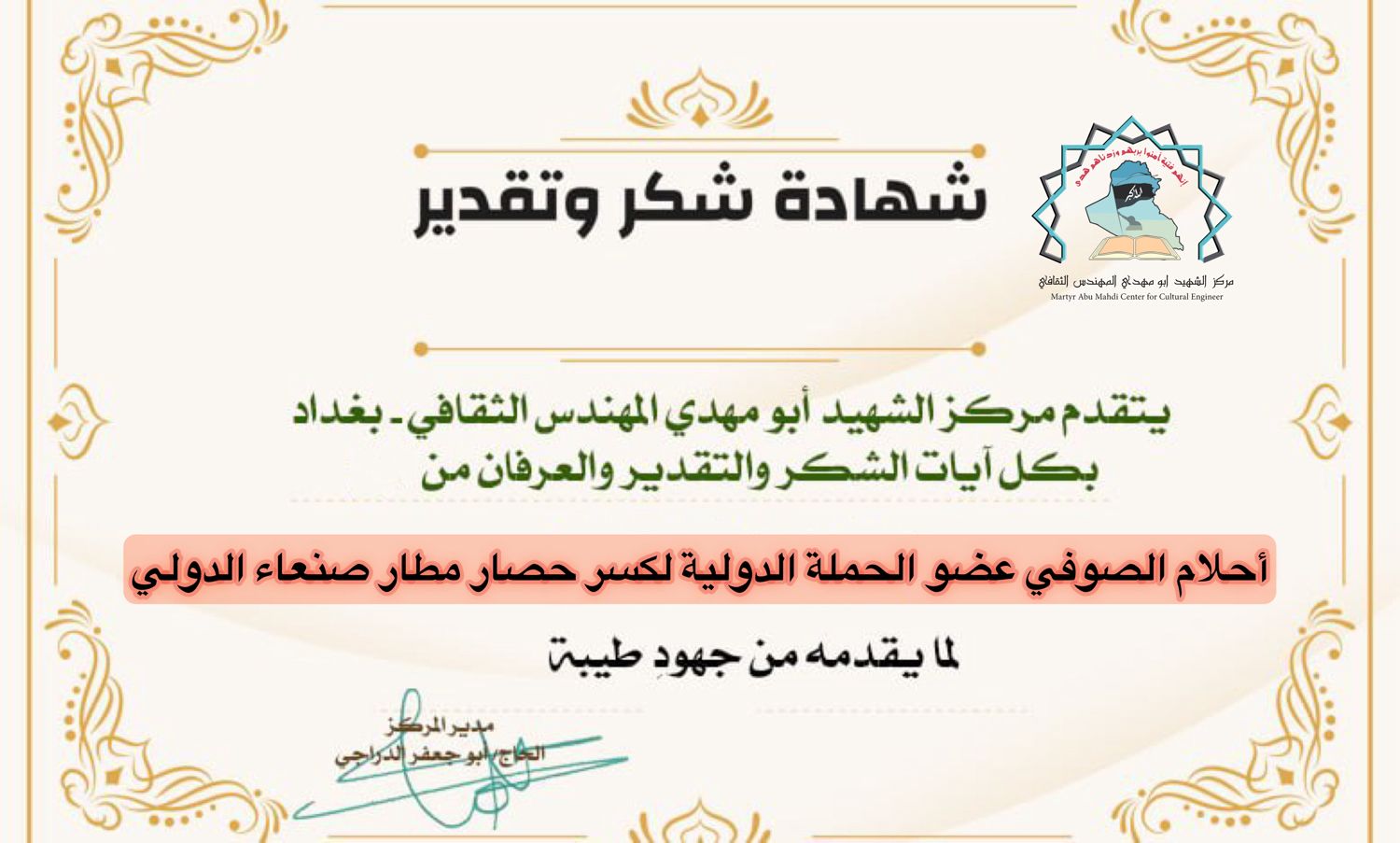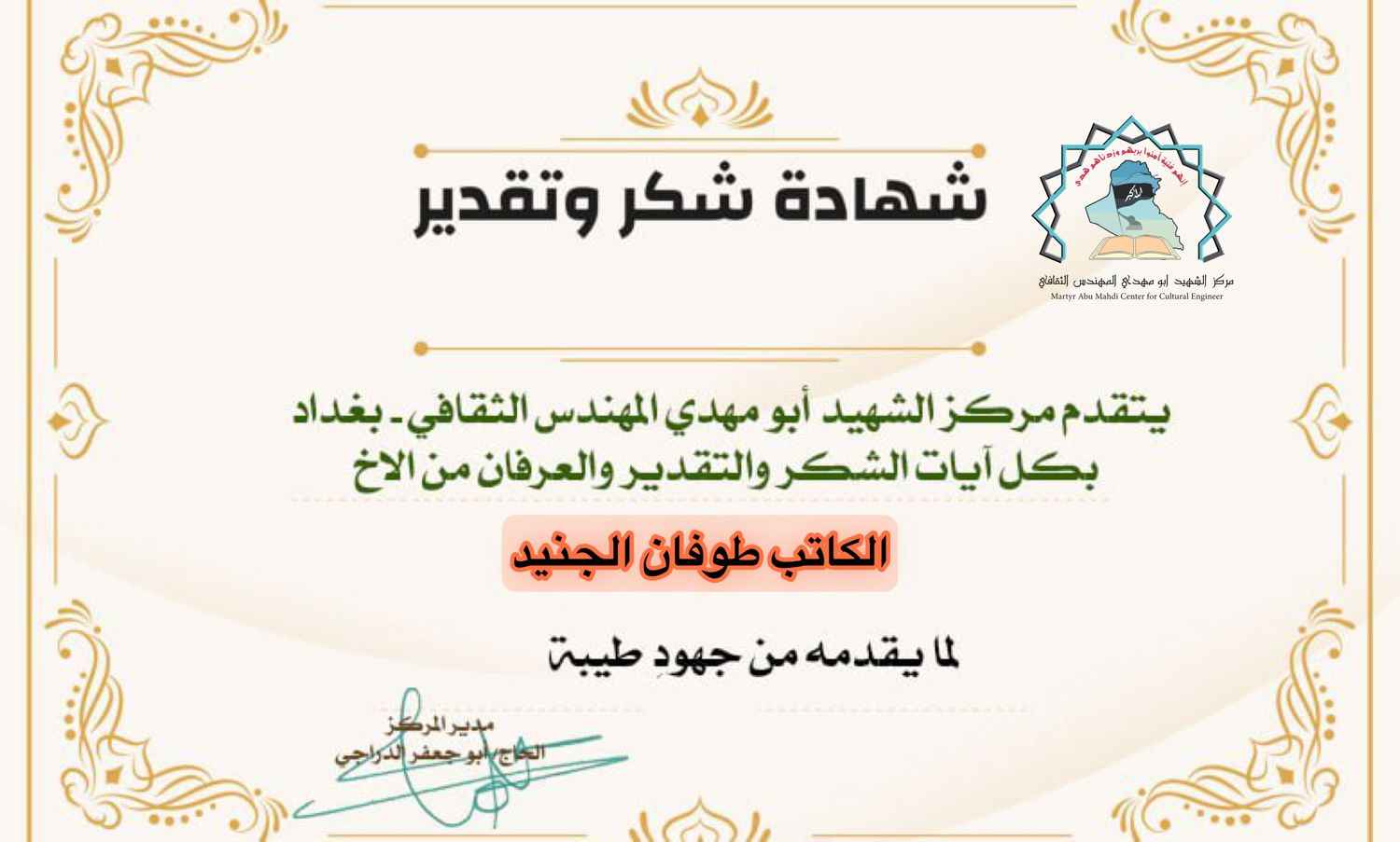 شبكة الشرق الأوسط نيوز : الاخ الحاجي أبو جعفر الدراجي مدير مركز الشهيد ابو مهدي المهندس