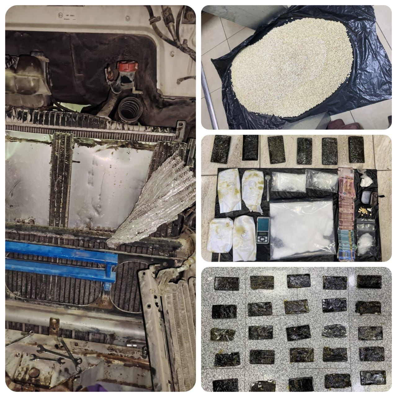 ** ضُبط خلال تلك القضايا ما مجموعة 7 كغم من مادة الكريستال القاتلة و 1 كغم من مادة الكوكايين المخدرة و 253 ألف حبة مخدرة و 92 كف حشيش و1.5 كغم ماريجوانا وثلاثة أسلحة نارية