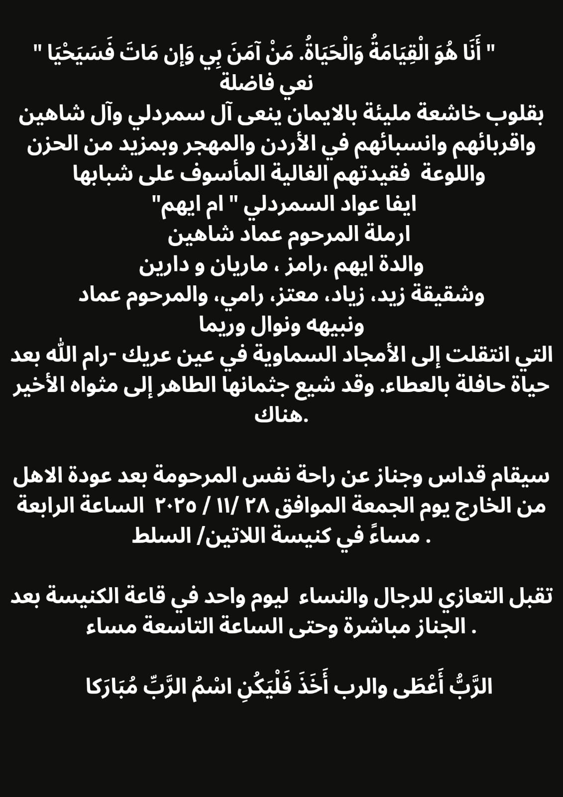 عزاء إل سمردلي Last updated نوفمبر 26, 2025 Share شبكة الشرق الأوسط نيوز : عزاء إل سمردلي Share FacebookTwitterGoogle+ReddItWhatsAppPinterestالبريد الإلكتروني