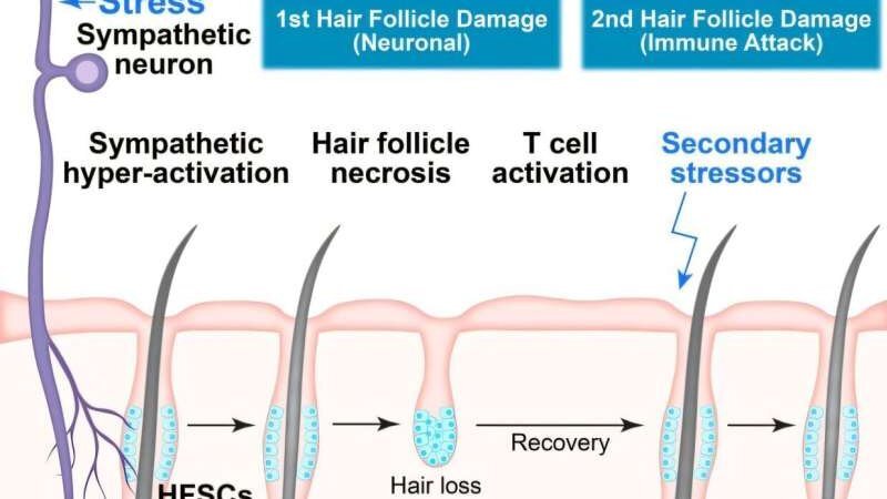 شبكة الشرق الأوسط نيوز : كشفت دراسة علمية أجراها علماء معهد هارفارد للخلايا الجذعية أن تساقط الشعر الناتج عن الإجهاد يحدث على مرحلتين.