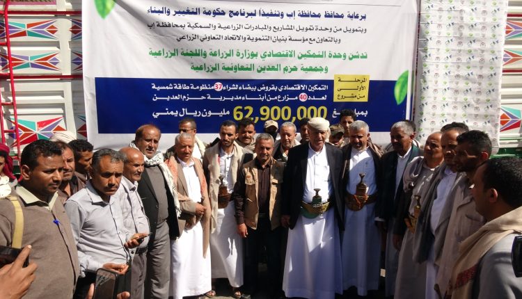وأفاد بأن رفد الجمعية التعاونية الزراعية بمديرية حزم العدين بمنظومات الطاقة الشمسية يأتي في إطار برامج تطوير القطاع الزراعي بالمحافظة.. منوهاً بما تزخر به محافظة إب من مقومات لمشاريع القطاع الزراعي باعتبارها سلة اليمن الغذائية.