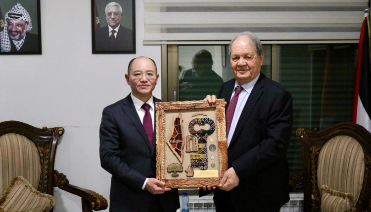 رئيس المجلس الوطني الفلسطيني يودّع السفير الصيني تسنغ جيشين ويمنحه درع مفتاح العودة وخارطة فلسطين