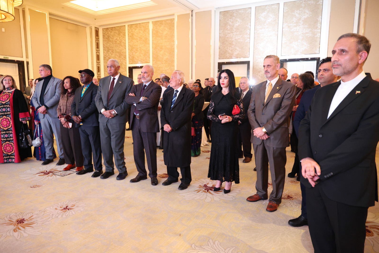 يَشْرُفُنِي أن أكون بينكم اليوم بمناسبة الذكرى السابعة والأربعين لانتصار الثورة الإسلامية في إيران، وأن أتقدم بجزيل الشكر والتقدير لحضور أصحاب المعالي من مسؤولي الدولة المضيفة، والسفراء ورؤساء البعثات الدبلوماسية، والشخصيات السياسية والثقافية والأكاديمية والاقتصادية، وكافة الضيوف الكرام.