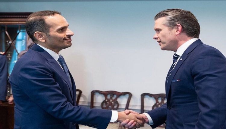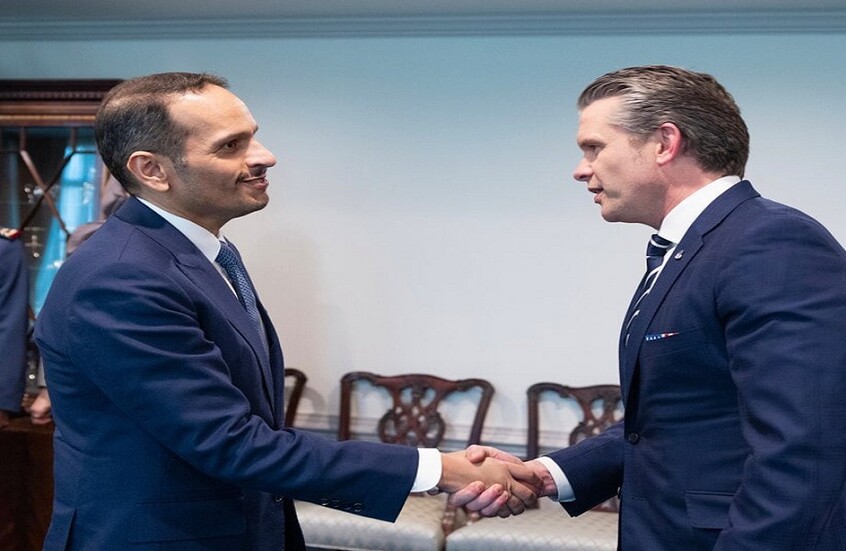 شبكة الشرق الأوسط نيوز : بحث رئيس الوزراء القطري محمد بن عبد الرحمن آل ثاني مع وزير الحرب الأمريكي بيت هيغسيث تعزيز العلاقات القطرية الأمريكية في المجالات الدفاعية والأمنية.