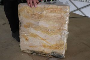 وأشار البيان إلى أنه جرى تشكيل فريق متخصص داخل المعبر الحدودي لتفتيش مركبة الشحن ليتم ضبط ٩٤٣ كغم من مادة على شكل مكعبات عجين، أُخفيت في سقف المركبة بطريقة سرية وبفحصها تبيّن أنها ذات مادة حبوب الكبتاجون المخدرة قبل تشكيلها لحبوب صغيرة وأن تلك الكمية تكفي لتشكيل ٥،٥ ملايين حبة مخدرة بعد وصولها للمكان الذي ينوون تهريبها إليه.