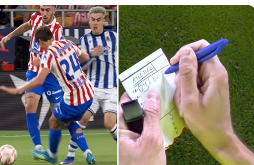 وكتب الحكم كلمة “أتلتيكو”، دون تحتها الرقم 24 (رقم اللاعب المنذر)، متبوعا بالرمز “Def=3″، الذي يفترض أنه يشير إلى “تدخل دفاعي من المستوى الثالث” وفق تصنيفات الاتحاد الإسباني، وفقا لما أوضحته صحيفة “ماركا” الإسبانية.