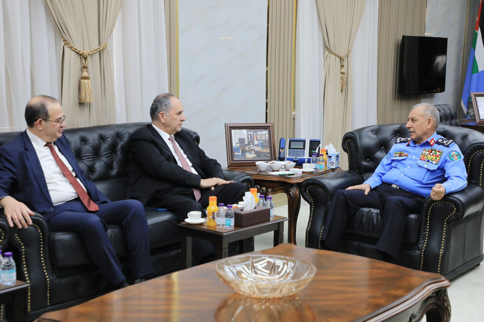 وأكد وزير العدل خلال اللقاء، حرص الوزارة على تعزيز التعاون مع مديرية الأمن العام، باعتبارها شريكاً رئيساً في دعم منظومة العدالة وإنفاذ القانون، لاسيما في مجالات تطوير الإجراءات القضائية وتكاملها مع الجوانب الأمنية، مشيداً بما تم تحقيقه من تحول رقمي في عدد من الخدمات والإجراءات القانونية على راسها برنامج المحاكمة عن بُعد، والذي سهل إجراءات التقاضي واختصر الوقت والجهد.