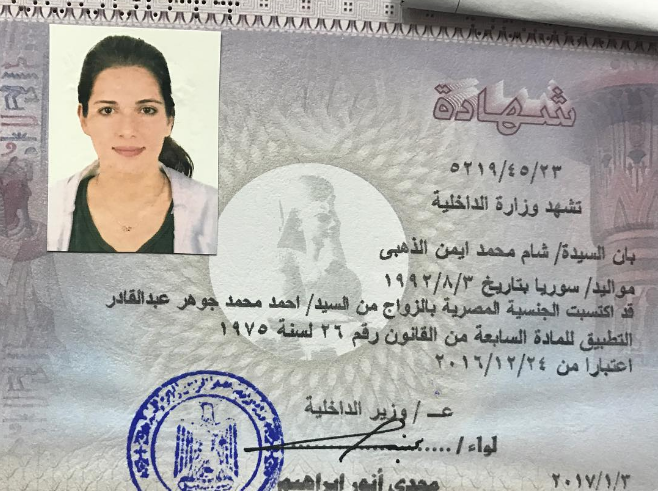 شبكة وهج نيوز : عبرت شام الذهبي، الابنة الكبرى للنجمة السورية أصالة عن سعادتها بالحصول على الجنسية المصرية من خلال وضع صورة شهادة الجنسية التي أصدرتها لها وزارة الداخلية في مصر، عبر حسابها على موقع أنستقرام.