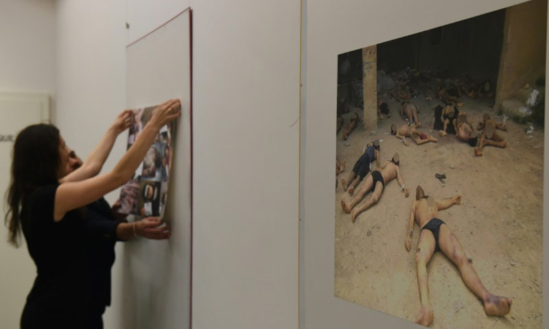 موظفون بالأمم المتحدة يرفعون صوراً لضحايا النظام السوري