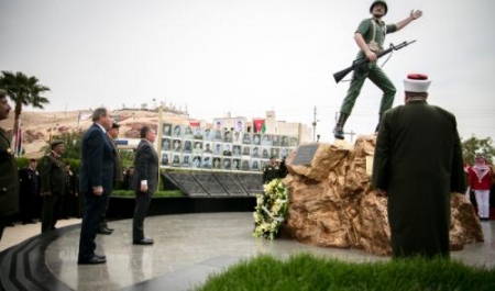 واستعرض جلالته، بحضور رئيس الوزراء وزير الدفاع، ورئيس هيئة الأركان المشتركة، حرس الشرف الذي اصطف لتحيته، ووضع إكليلاً من الزهور على الصرح التذكاري لشهداء معركة الكرامة.