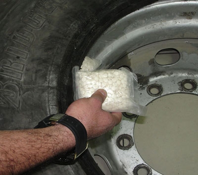 ووفقا للمصادر السعودية ، فقد ضبط العاملون في جمارك الدرة 49 الف حبة كبتاجون مع مواطن اردني بعد دخوله الى الحدود السعودية ، بعد ان حاول اخفائها في اطارات المركبة.