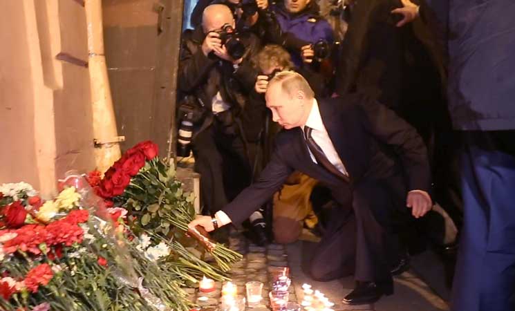 وفي إطار منفصل، تفقد الرئيس الروسي فلاديمير بوتين مساء الاثنين موقع الاعتداء في مترو مدينة سان بطرسبرغ (شمال غرب) ووضع باقة من الزهر تكريما للضحايا، كما افاد مصور وكالة فرانس برس.
