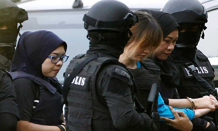 ومثلت الاندونيسية سيتي عائشة (25 عاما) والفيتنامية ثي هوونغ (28 عاما) اماما محكمة منطقة سيبانغ القريبة من مطار كوالالمبور الدولي حيث اغتيل كيم جونغ-نام بالسم في 13 شباط/ فبراير. وكانت كل من السيدتين ترتدي سترة واقية من الرصاص ورافقهما رجال شرطة مسلحون برشاشات.