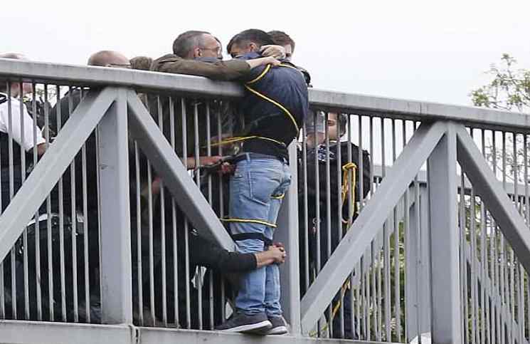 وأمضى المارة والشرطة ساعتين وهم يمنعون الرجل الذي هدد بالقفز من فوق الجسر .