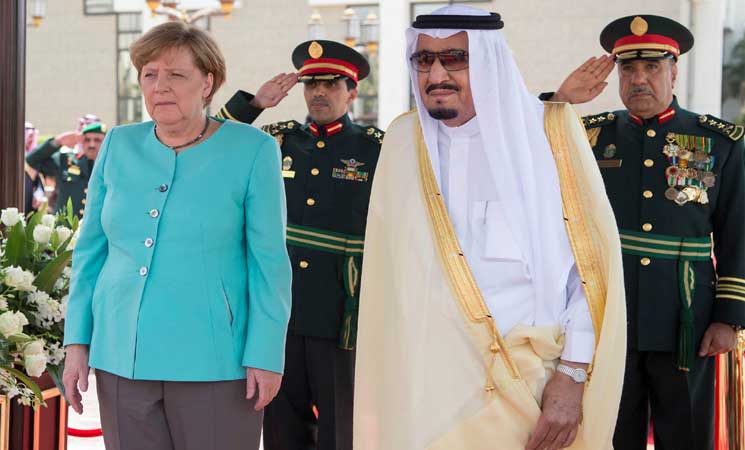 الملك سلمان يستقبل ميركل ويقيم مأدبة غداء تكريماً لها ويبرمان اتفاقية لتدريب أفراد من الجيش السعودي