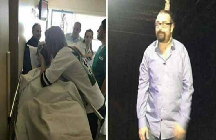 وانتشرت صورتان إحداها للزعتري وهو يشنق نفسه، وأخرى وهو على سرير بأحد المستشفيات وبجواره زوجته.