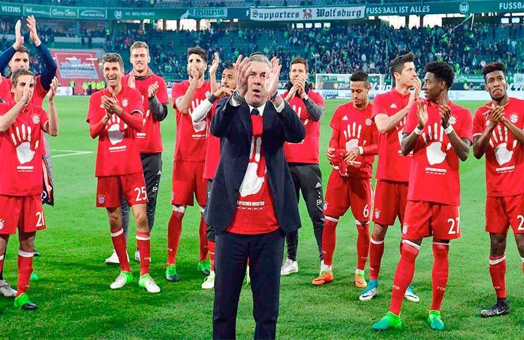ويملك البايرن، الفائز باللقب 27 مرة، 73 نقطة، بينما يأتي لايبزيغ في المركز الثاني برصيد 63 نقطة بعد تعادله بدون أهداف مع انغولشتاد. وقال فيليب لام قائد البايرن الذي سيعتزل بنهاية الموسم: «ما فعله الفريق مرة أخرى في الدوري هذا الموسم أمر مذهل. لن نضمن على الإطلاق الفوز باللقب بسهولة كما فعلنا هذا الموسم». وهز روبرت ليفاندوفسكي هداف المسابقة الشباك مرتين ليرفع رصيده إلى 28 هدفا، وأضاف ديفيد آلابا وتوماس مولر وارين روبن ويوشوا كيميش أربعة أهداف ليسحق البايرن مضيفه. وتعهد البايرن بالرد عقب خروجه من قبل نهائي كأس المانيا أمام بروسيا دورتموند ودور الثمانية في دوري أبطال اوروبا أمام ريال مدريد. وفشل الفريق البافاري في الفوز في آخر مباراتين في الدوري وخمس مباريات متتالية بجميع المسابقات، ليتحول سعيه للفوز بثلاثية الدوري والكأس ودوري الأبطال إلى منافسة على لقب واحد. وقال كارلو أنشيلوتي مدرب البايرن: «أنا سعيد للغاية ونستحق الفوز. كانت خبرة مذهلة وأود توجيه الشكر للجماهير والنادي. الآن وقت الاحتفال». ولم يظهر البايرن أي علامات على اهتزاز الثقة فأحرز ثلاثة أهداف في الشوط الأول في ظل معرفته بأن لايبزيغ لم يفز في مباراته. وأجهز البايرن على فولفسبورغ المهدد بالهبوط بثلاثة أهداف أخرى في الشوط الثاني بعدما لعب الفريق صاحب الأرض بعشرة لاعبين عقب طرد لويز غوستافو لاعب البايرن السابق لحصوله على إنذارين. وقال كارل هاينز رومينيغه الرئيس التنفيذي للبايرن: «الدوري هو أهم لقب. الآن فزنا به للمرة الخامسة على التوالي. هذا أمر غير معتاد ومذهل. سنحتفل الليلة ثم في ختام الدوري مع جماهيرنا». وبقي دورتموند في المركز الثالث برصيد 57 نقطة بعد تعادله بدون أهداف مع كولن. ويستطيع هوفنهايم الرابع برصيد 55 نقطة أن يعود للمركز الثالث إذا انتصر على اينتراخت فرانكفورت.