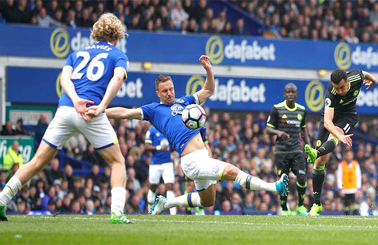 وارتفع رصيد تشلسي، الساعي للحصول على لقبه السادس، إلى 81 نقطة في الصدارة، وما زال يملك مباراة مؤجلة، بفارق أربع نقاط أمام أقرب ملاحقيه توتنهام، الذي ما زالت لديه مباراة مؤجلة أيضا. في المقابل، تجمد رصيد إيفرتون، الذي عجز عن الفوز للمباراة الثانية على التوالي، عند 58 نقطة في المركز السابع. وأخفق الفريقان في هز الشباك خلال الشوط الأول الذي انتهى بالتعادل السلبي، وفي الشوط الثاني، ترجم تشلسي سيطرته، بعدما افتتح نجمه الأسباني بيدرو التسجيل للفريق اللندني في الدقيقة 66 عبر تسديدة من خارج منطقة الجزاء على يمين مارتن ستيكلنبرغ حارس إيفرتون. واستغل تشلسي حالة الارتباك التي طغت على أداء إيفرتون عقب الهدف، ليضيف غاري كاهيل الهدف الثاني في الدقيقة 79. ونفذ النجم البلجيكي إيدين هازارد ركلة حرة مباشرة من الناحية اليسرى، حيث سدد كرة زاحفة أبعدها ستيكلنبرغ بصعوبة بالغة، لتصطدم الكرة في قدم كاهيل لتعانق الشباك. وقبل نهاية الوقت الأصلي بأربع دقائق، أضاف البرازيلي ويليان الهدف الثالث، بعد دقيقة واحدة من نزوله أرض الملعب. وأرسل (البديل) سيسك فابريغاس تمريرة عرضية من الناحية اليسرى، إلى ويليان، الخالي من الرقابة، الذي لم يجد صعوبة في التسديد من داخل المنطقة، واضعا الكرة على يسار حارس إيفرتون.