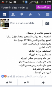 شبكة وهج نيوز : سادت حالة من الغضب و السخط بين رواد مواقع التواصل الاجتماعي عقب قرار رئيس الوزراء الدكتور هاني الملقي زيادة رواتب العاملين في الفئة العليا بمقدار 220 دينار، عقب قرارات متتالية للرئيس برفع اسعار و سلع و خدمات مقدمة للمواطنين تحت حجة سداد عجز الموازنة.
