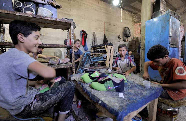 أما في مصنعه المبني خصيصا للإنتاج قبل الحرب فقد كان يدفع 100 ألف ليرة أسبوعيا لتشغيل 30 آلة في منطقة معامل الليرمون الصناعية في غرب حلب. وكانت قيمة الليرة السورية تبلغ نحو عشرة أمثال قيمتها الحالية مقابل الدولار.