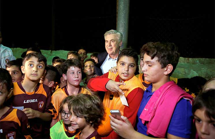 الايطالي أنشيلوتي يدرب مجموعة من الأطفال في القدس