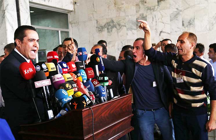 واقتحم 50 شخصا من الموالين لبارزاني سور البرلمان، ومن ثم تمكنوا من الوصول إلى قاعة الاستقبال داخل المبنى، رغم محاولة الحراس منعهم وإطلاق النار في الهواء.