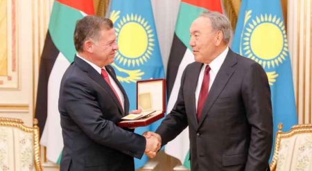 شبكة وهج نيوز : سلم الرئيس الكازاخستاني نور سلطان نزارباييف جلالة الملك عبدالله الثاني جائزة نزارباييف الدولية للمساهمة في الأمن ونزع السلاح النووي.