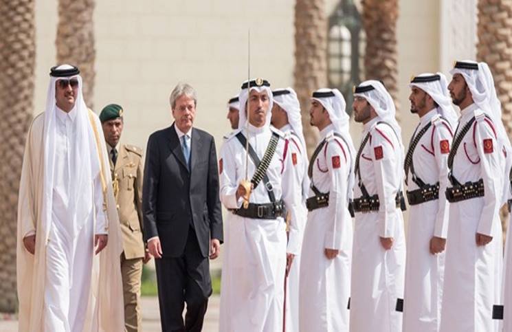 أمير قطر وجينتيلوني يبحثان الأزمتين الخليجية والليبية ومكافحة الإرهاب