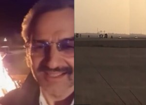 وظهر في الفيديو طائرة الوليد ابن طلال تستعد لٌلإقلاع إلا أن سيارات الشرطة أحاطت بها من اكثر من جهة حتى عادت للمدرج من جديد.