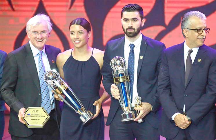 وتفوق خربين على منافسيه الإماراتي عمر عبدالرحمن (عموري) لاعب العين الإماراتي والصيني وو لي لاعب شنغهاي الصيني. وأبدى خربين، الذي قدم أداء مذهلا مع فريقه الهلال وكذلك منتخب بلاده، منذ بداية العام الجاري، سعادته بالتتويج قائلا: «هذا الإنجاز ساهم فيه كل أصدقائي في الهلال والمنتخب السوري». وبات خربين اللاعب الرابع في تاريخ الهلال الذي يحصل على جائزة أفضل لاعب، بعد نواف التمياط (2000) وياسر القحطاني (2007) وناصر الشمراني (2014). وتوج الياباني تاكافومي هوري، مدرب أوراوا ريد دايموندز، بجائزة أفضل مدرب. بعدما قاد فريقه إلى التتويج بدوري أبطال آسيا هذا العام، إثر فوزه على الهلال بنتيجة إجمالية 2/1 في النهائي. وأحرز اللقب متفوقا على منافسيه الياباني ايشي ماساتادا والأسترالي أنجي بوستيكوغلو. ونال الكوري الجنوبي سون هيونغ مين جائزة أفضل لاعب آسيوي خارج القارة، بعد العروض القوية، التي قدمها هذا العام مع كوريا الجنوبية وفريق توتنهام الإنكليزي. وبدأ النجم الكوري مسيرته مع نادي سيول عام 2008 حيث كان يبلغ 16 عاما، قبل أن ينتقل إلى ألمانيا مع هامبورغ، ثم لعب مع باير ليفركوزن بين 2013 و2015، قبل أن ينتقل إلى توتنهام مقابل 30 مليون يورو. وفي العام الحالي، ساهم سون في تأهل كوريا الجنوبية إلى نهائيات كأس العالم، كما سجل 14 هدفا الموسم الماضي مع توتنهام ليقوده إلى المركز الثاني في الدوري الإنكليزي. وفازت اللاعبة الأسترالية سامانثا كير بجائزة أفضل لاعبة، عقب تفوقها على اليابانية ساكي كوماغاي والكورية الشمالية سونغ هيانغ سيم. وقدمت مستويات مميزة على مستوى النادي والمنتخب، حيث أكدت مكانتها ضمن أفضل اللاعبات في العالم. وسجلت كير خلال عام 2017 ما مجموعه 34 هدفاً، بينها 9 أهداف دولية، حيث سجلت «هاتريك» في مرمى اليابان وثنائية في مرمى البرازيل والصين. وفازت بجائزة «جولي دولان» لأفضل لاعبة في الدوري الأسترالي، وذلك في شهر أيار/مايو الماضي، قبل أن تنتقل للعب مع نادي سكاي بلو الأمريكي، حيث سجلت 17 هدفا في 22 مباراة، وحصلت على جائزتي الهدافة وأفضل لاعبة. وساهمت كير (24 عاما) في فوز استراليا ببطولة الأمم التي أقيمت في الولايات المتحدة، بعدما تغلب الفريق على الولايات المتحدة واليابان والبرازيل. وتطمح اللاعبة الشابة في قيادة منتخب بلادها إلى الفوز بلقب كأس آسيا للمرة الثانية في تاريخه، في النهائيات التي تقام في نيسان/أبريل المقبل في الأردن. وفازت اليابانية اساكو تاكاكورا بجائزة أفضل مدربة، للمرة الخامسة بعد أعوام 2012 و2013 و2014 و2015. وتصدرت تاكاكورا عناوين الصحافة العام الماضي، بعدما باتت أول مدربة تستلم مهمة تدريب منتخب اليابان للسيدات، عندما خلفت المدرب السابق نوريو ساساكي. وفاز لاعب الوسط الكوري الجنوبي لي سيونغ وو بجائزة أفضل لاعب شاب، بعدما حسم الصراع مع مواطنه بايك سيونغ هو والإيراني طه شريعتي. وساهم لاعب الوسط (19 عاما) في تأهل كوريا الجنوبية إلى دور الـ16 خلال نهائيات كأس العالم للشباب تحت 20 عاماً، التي أقيمت في كوريا الجنوبية، حيث سجل هدفين خلال البطولة. وتخرج لي من أكاديمية نادي برشلونة الإسباني، حيث أمضى سبع سنوات فيها منذ 2011 حتى 2017، ولعب عام 2016 مع الفريق الرديف لبرشلونة، ثم انتقل عام 2017 إلى فيرونا الإيطالي. وفازت اتحادات الصين وسنغافورة وبوتان بجائزة تقدير رئيس الاتحاد الآسيوي الخاصة بالواعدين. وتمنح هذه الجائزة إلى الاتحادات الوطنية تقديراً لجهودها للترويج لكرة القدم على مستوى الواعدين.