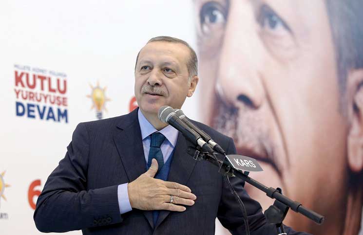 وقال أردوغان «هناك أطراف اعتادت على تركيا القديمة التي كانوا يخاطبونها بالأوامر، وكانت تخضع للغرب وترضخ أمام التهديدات ويضعونها خارج اللعبة متى ما يريدون، وتلك الأطراف لا تريد أن تتقبل تركيا قوية وكبيرة ومستقلة». وأضاف هذه الأطراف «تستشيط غضبًا إزاء رفض تركيا الرضوخ أمامها دون قيد أو شرط، وبسبب دفاعها عن مصالحها الوطنية».