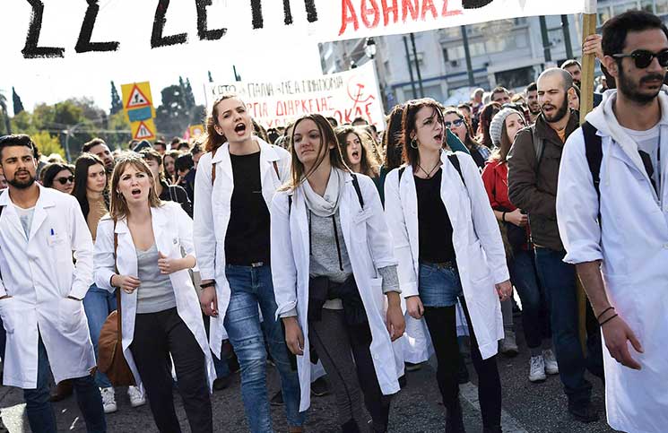 وأقرت اليونان مؤخرا حزمة جديدة من التدابير في إطار حزمة الإنقاذ الثالثة التي تحصل عليها البلاد منذ عام 2010. وتضمنت التدابير تعديلات في سوق العمل، تفرض قيودا على حق الإضراب، وتخفف قواعد تسريح العمال.