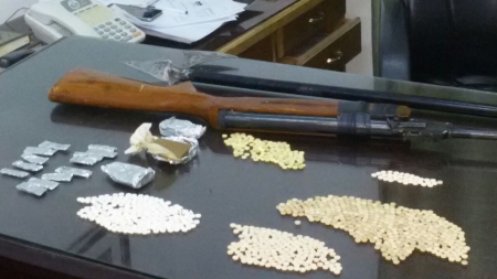 واضاف المصدر انه بتفتيش المنزل عثر داخله على سلاح ناري وكميات متفرقة من المواد المخدرة المتنوعة وبوشرت التحقيقات.
