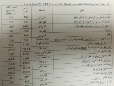رفع اسعار البنزين والديزل وتخفيض الكاز On ديسمبر 31, 2017 Share شبكة وهج نيوز : قررت لجنة تسعير المحروقات اليوم الاحد رفع أسعار البنزين اوكتان 90 واوكتان 95 ومادة الديزل قرشا واحدا للتر.بينما قررت تخفيض سعر مادة الكاز 3 قروش للتر الواحد. Share FacebookTwitterGoogle+ReddItWhatsAppPinterestالبريد الإلكتروني