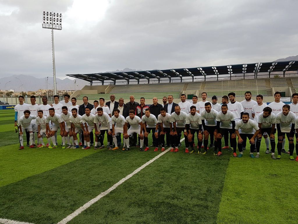 شبكة وهج نيوز : ضمن برنامج استضافة جامعة العقبة للتكنولوجيا لنادي أبناء القدس، وذلك لتجسيد رؤية سيد البلاد جلالة الملك عبدالله الثاني المتمثله بدعم أشقائنا الفلسطينين وذلك لدعم صمودهم بوجه الإحتلال الصهيوني، أقيمت اليوم مباراه ودية بين نادي أبناء القدس ونادي شباب العقبة على ملعب تطوير العقبة وكانت هذه المباراه تحت رعاية معالي رئيس سلطة العقبه السيد ناصر الشريدة، وبحضور عطوفة الأستاذ الدكتور صلحي الشحاتيت رئيس جامعة العقبة للتكنولوجيا حيث شارك فريق ابناء القدس بهذه المباره بالزي الرياضي الخاص بجامعة العقبة للتكنولوجيا وذلك تكريماً للجامعة لما قدمته لهم من دعم كامل خلال استضافتها لهم وانتهت المباراه بفوز نادي أبناء القدس على نادي شباب العقبة 5-0