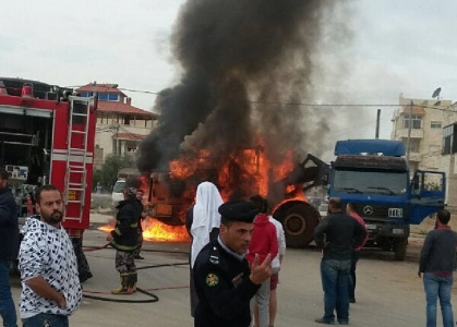 إخماد حريق شب بـ “بجرافة” في شارع الثلاثين بإربد