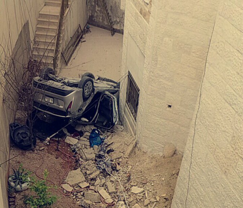 سقوط مركبة في تسوية عمارة بمنطقة ضاحية الرشيد
