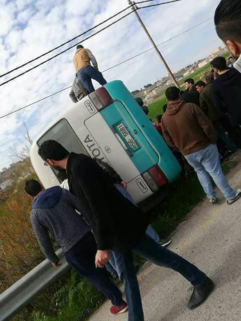 شبكة وهج نيوز : صرحت إدارة الإعلام في الدفاع المدني بأن فرق الإنقاذ والإسعاف في مديرية دفاع مدني غرب اربد تعاملت مع حادث تصادم بين مركبة صغيرة وباص كوستر يعمل على خط (اربد -الحصن) الأمر الذي أدى إلى انقلاب الباص , حيث نتج عن الحادث إصابة (5) أشخاص بجروح ورضوض في مختلف أنحاء الجسم .