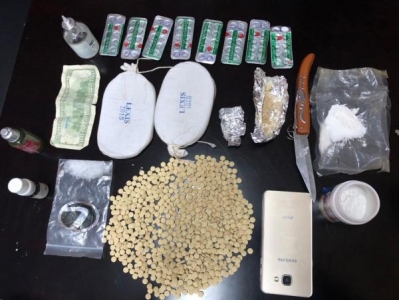 واضاف المصدر انه عثر داخل المركبة على كمية من المواد المخدرة وجرى بعد ذلك التوجه لمنزل ذلك المطلوب وبتفتيشه عثر داخله على كفين من مادة الحشيش المخدر و(٨٣٤) حبة كبتاجون وقصديرتين كبيرتين بداخلهم مادة الهيروين المخدرة و (٧٨) حبة من حبوب الترامادول.