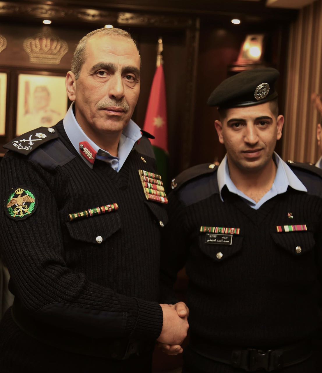 كما ومنح مدير الأمن العام اللواء فاضل الحمود شارة الكفاءة الادارية والفنيه للعريف محمد الحنيطي تقديراً لعطائه المتميز والشجاع في خدمة وطنه وليكون هذا الوسام بمثابة حافزا له ولزملائه من جهاز الأمن العام وفي مختلف مهام عملهم لبذل المزيد من العطاء والتضحية اثناء ادائهم لواجباتهم .