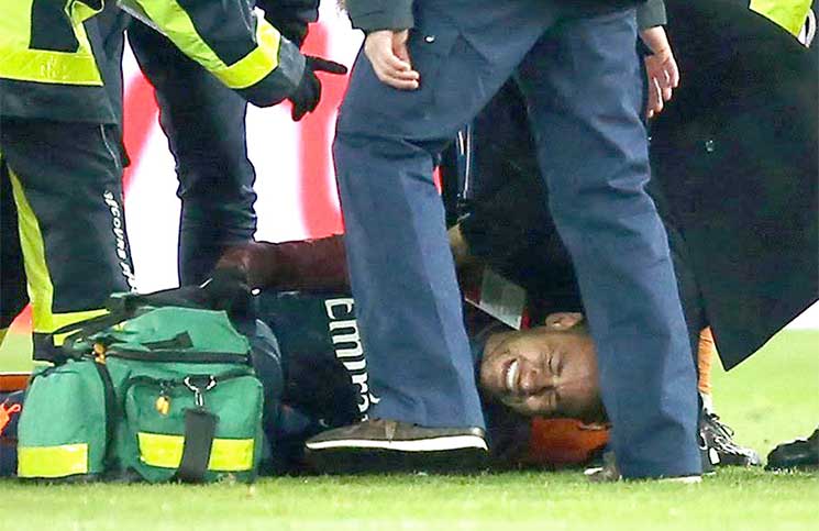 وأصيب أغلى لاعب في العالم خلال فوز سان جيرمان 3-1 على غريمه التقليدي مارسيليا وغادر الملعب محمولا على محفة وهو يبكي. وقال والده إن الإصابة ستبعد نيمار بالتأكيد عن مباراة ريال مدريد في إياب دور الستة عشر لدوري أبطال اوروبا الأسبوع المقبل. وقال: “باريس سان جيرمان يعرف أن نيمار لن يكون معه في المباريات القليلة المقبلة وأنه سيفقده لستة أسابيع على الأقل”. وأضاف: “العلاج سيستغرق من ستة إلى ثمانية أسابيع ونحن نعرف ذلك، سواء احتاج إلى جراحة أو لا، سيستغرق الأمر ستة أو ثمانية أسابيع″. وقال نيمار الأب إن ابنه والنادي الفرنسي ينتظران رأي طبيب منتخب البرازيل لتحديد إذا كان المهاجم بحاجة لجراحة. ونيمار هو أهم لاعب في البرازيل في السنوات الأخيرة والأهم في التشكيلة التي ستشارك في نهائيات كأس العالم في روسيا في يونيو/حزيران. وقال نيمار الأب: “سيقرران معا. إنه وقت صعب لنا. لا نرغب في أن نكون في هذا الموقف. لكن علينا تقبل الأمر ومساعدة نيمار بأفضل طريقة ممكنة”. وأدلى والد نيمار بتعليقاته في برنامج حواري رياضي على الهواء مباشرة وتناقضت مع تصريحات أوناي ايمري مدرب سان جيرمان الذي قال إن مهاجمه البالغ 26 عاما سيكون جاهزا لمواجهة ريال مدريد. وخسر سان جيرمان 3-1 في لقاء الذهاب في العاصمة الاسبانية وسيستضيف حامل اللقب في الإياب الثلاثاء المقبل. وأحرز نيمار 28 هدفا وصنع 16 مع سان جيرمان هذا الموسم.